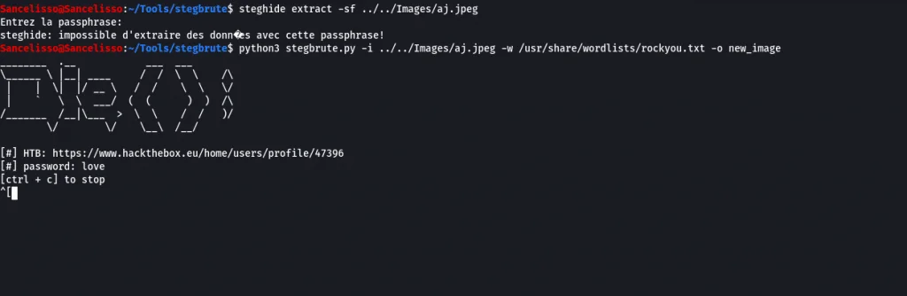 Le passphrase était donc love. Nous allons extraire le fichier caché avec le passphrase trouvé comme l’illustre bien l’image ci-après.