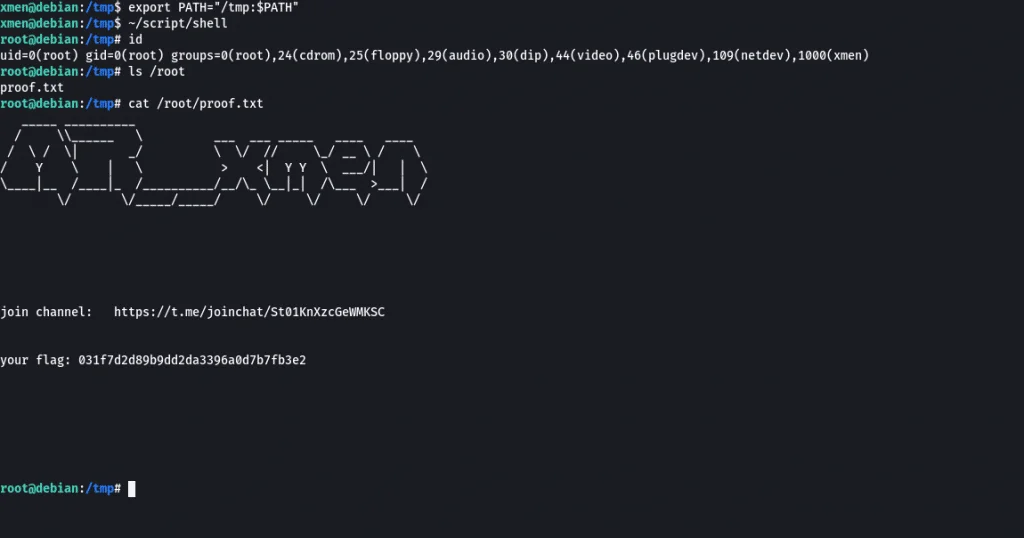 Pour réussir notre coup, nous devons modifier la variable d’environnement PATH afin de faire considérer le répertoire /tmp au système lors des exécutions des scripts. Ensuite nous pourrons exécuter le binaire shell pour avoir l’accès root.