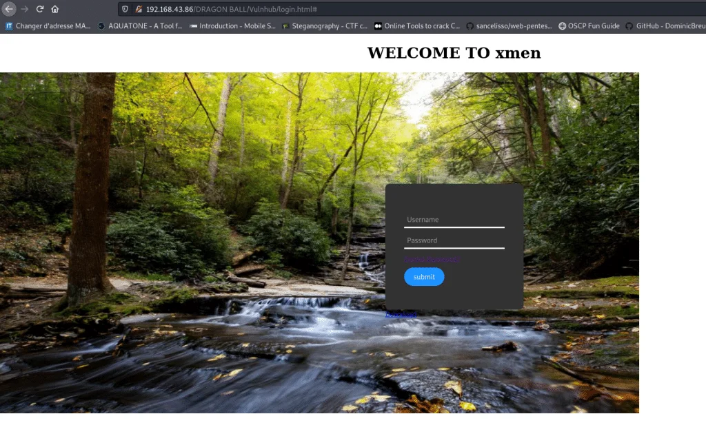 Il s’agit d’une page d’authentification non fonctionnelle. Alors, le texte: WELCOME TO xmen attire notre attention.